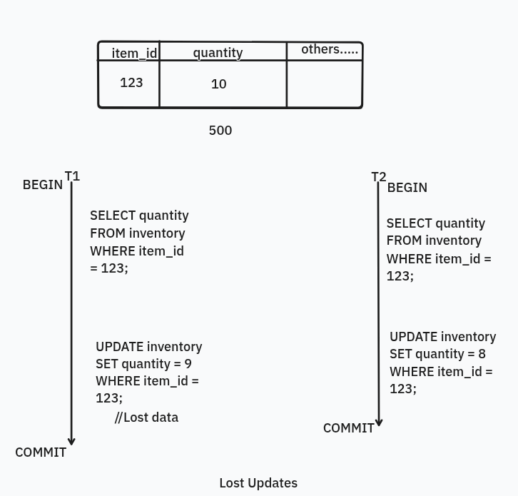 Lost Updates are the phenomenon where you update or write data into the db using a transaction and another transaction comes in write into the database its own data and commits, so when you read that data or that data that you have written is being lost.